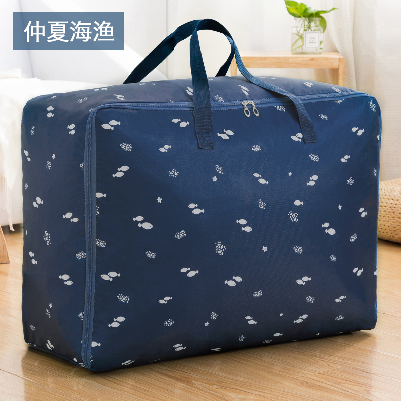 双层手提棉被袋 牛津布拉链收纳袋--藏青鱼 超大号