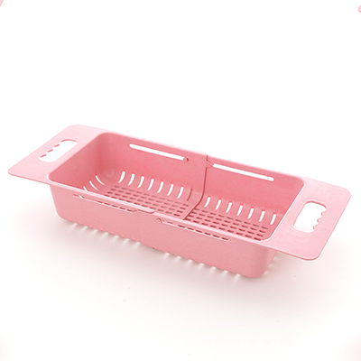 小麦秸秆可伸缩水槽沥水置物架 镂空收纳篮--粉色